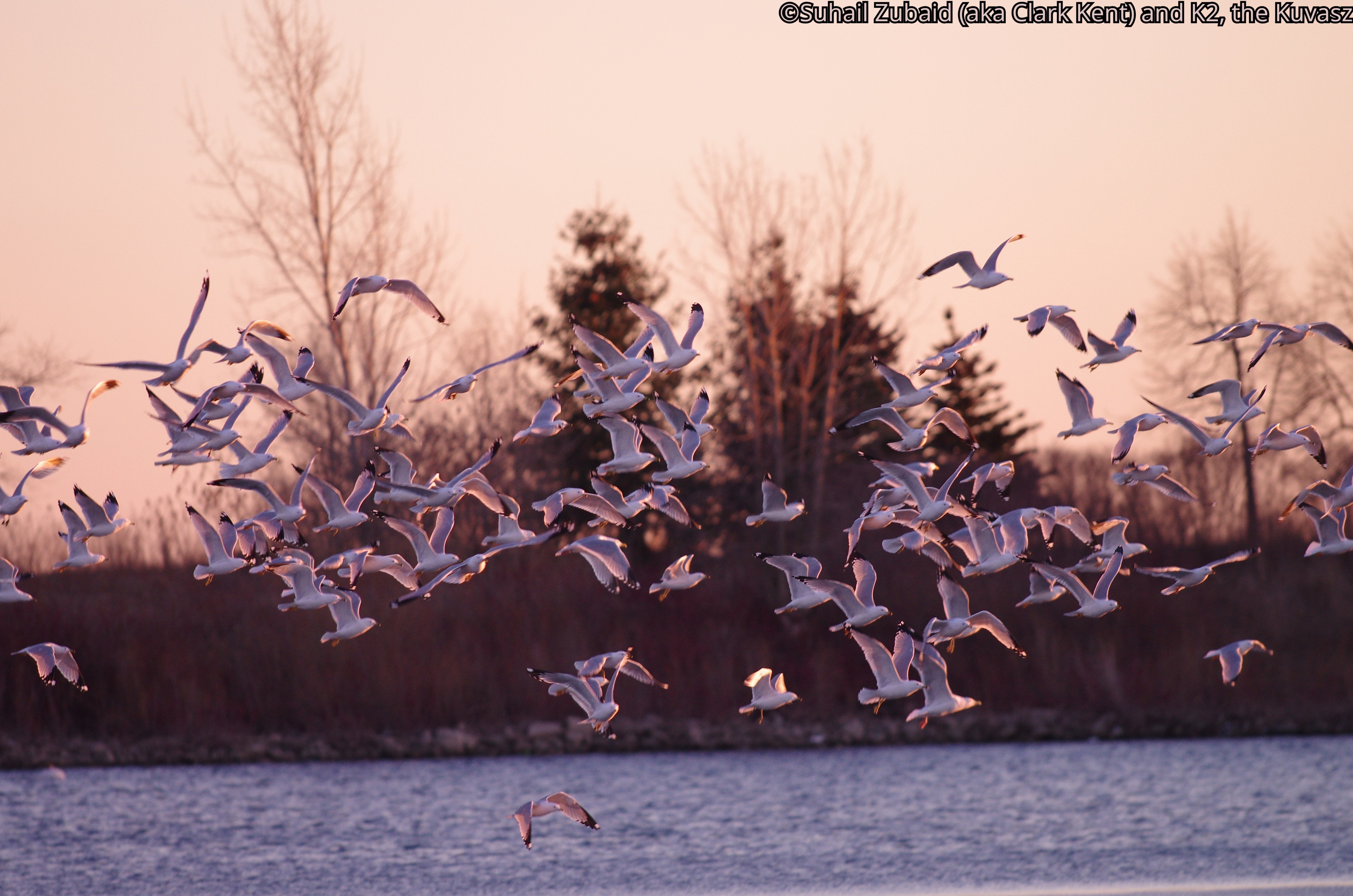 K2, the Great White Kuvasz, with his backpack carrying kibble, water bottles, treats, poop bags, extra leash and some of my stuff, all in all about 20 pounds, and I, with my backpack that carried winter hiking gear plus my camera and paraphernalia, set out for a driving and hiking adventure along the waterfront trails of Burlington, Oakville, Mississauga and Toronto.