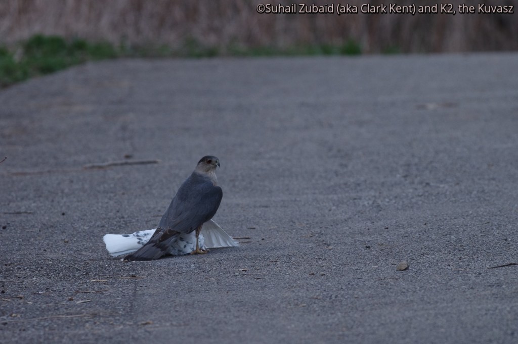 Once, in the month of May, I saw a Cooper’s hawk, who would not leave its rock pigeon kill even though K2 and I stood there for almost 2 minutes waiting for it to clear the trail. Then, disgusted by our constant presence, holding its hunt by talons of one leg, it took off vanishing in the nearby trees.