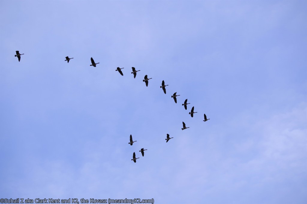Just before dusk, I observed families after families of Canada geese flying past the ravine system returning from their foraging grounds somewhere in the east of the Valley to their resting place at night somewhere in the west.