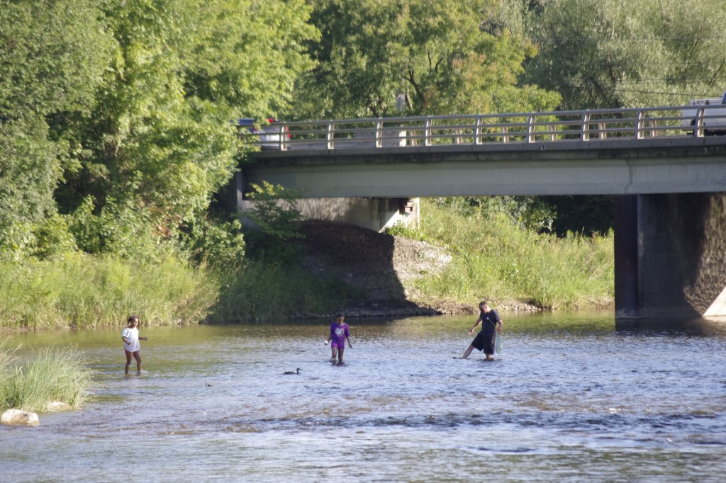 The stretch to the south of narrow and busy Creditview Road included hiking on Highway 401 overpass that ran by Credit Meadows Park, which was a small wild park back then, on our left hand side where we had our snacks and observed some water-based activities.