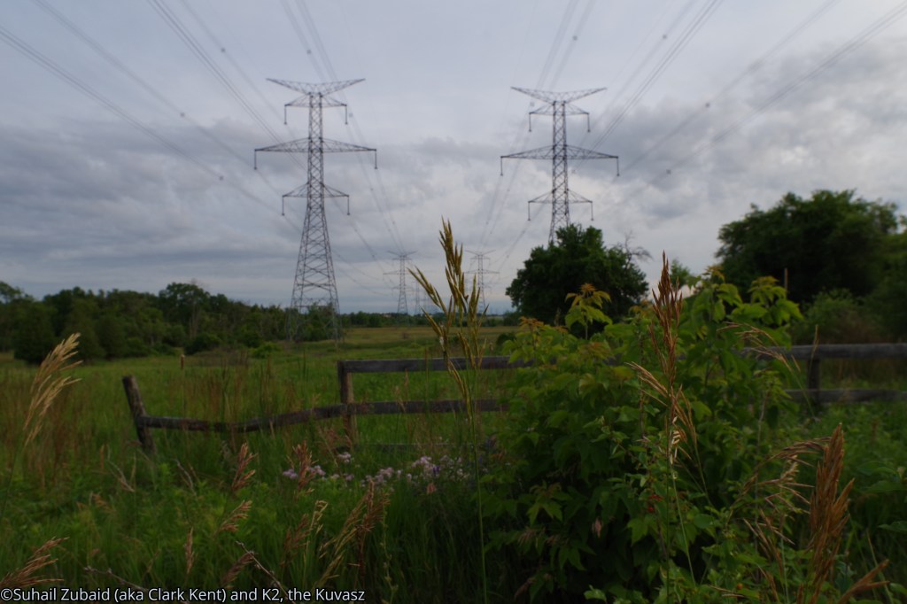 The Trail passed along a flood control zone underneath high power transmission lines as seen in the shots below where K2 and I enjoyed observing wildflowers. On other occasions, we have run into coyotes, deer, and wild birds.