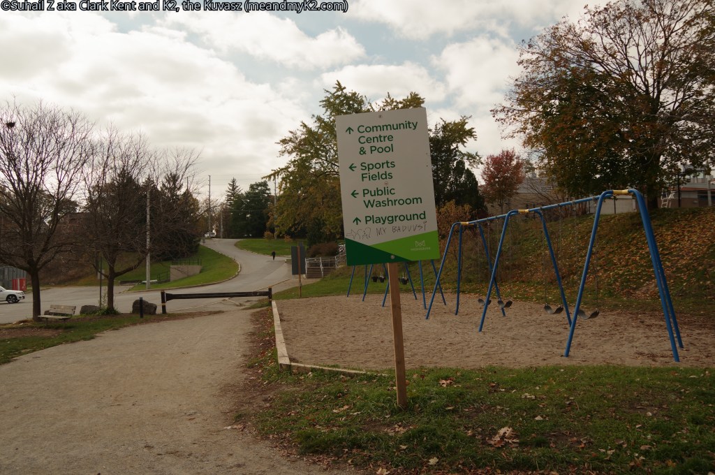 At the end of this section there was a steel/wooden truss bridge that led to a dead end. So much for my hope that the trail would continue. K2 and I had to make a U-Turn and after quickly passing through a children small playground and a parking lot by the building of Streetsville Arena, we reached Church Street.