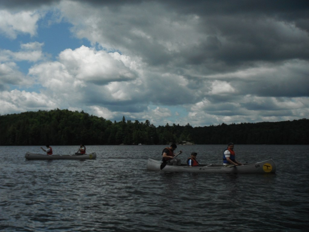 We were half way through to the end of the lake while canoeing when we figured that we would be intercepted by a thunderstorm. We started paddling back for the shore using all the strength of our arms and legs. Half-way and we seemed to be out of breath already. The clouds were all over us and we could hear the thunder that seemed to burst our eardrums and lightening that was reflecting all over the dark water making us squint. The storm seemed just a few moments behind us almost catching up. Drawing on our last repertoire of energy, we continued paddling and touched the shore almost at the same time as the first burst of downpour hit us.