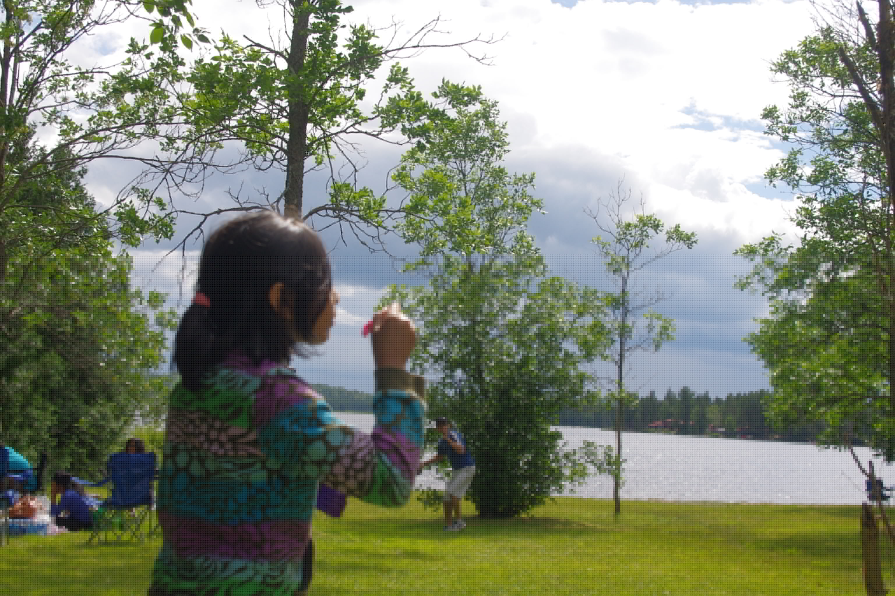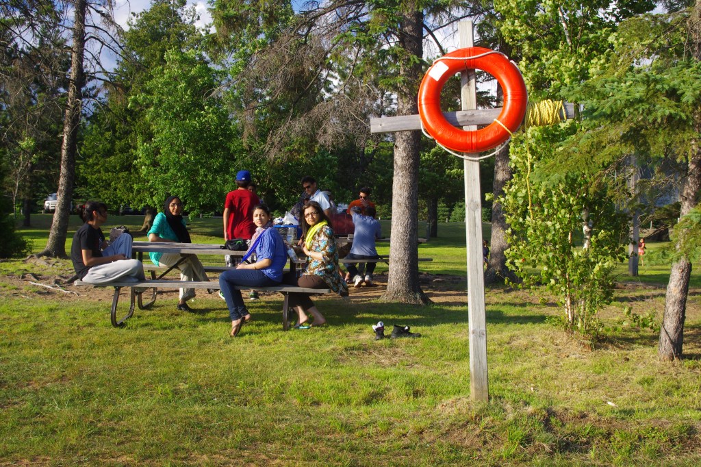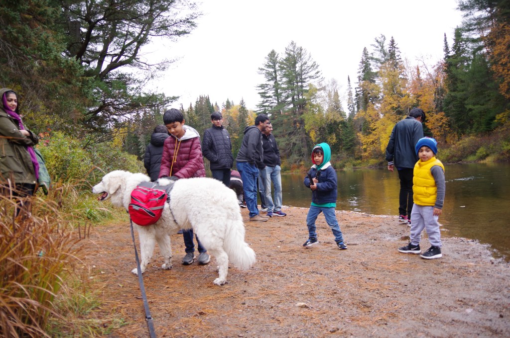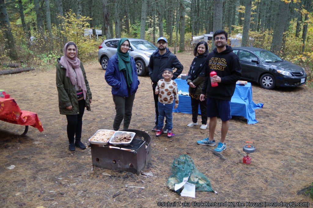 We stopped by the Mew Lake beach and picnic grounds for having our gourmet lunch in the summer of 2019. Since we were a group of over 20 cousins and our families, each of us had brought our family favorites as part of a potluck. Food was spread while the children played ball. K2 enjoyed sniffing the grounds.