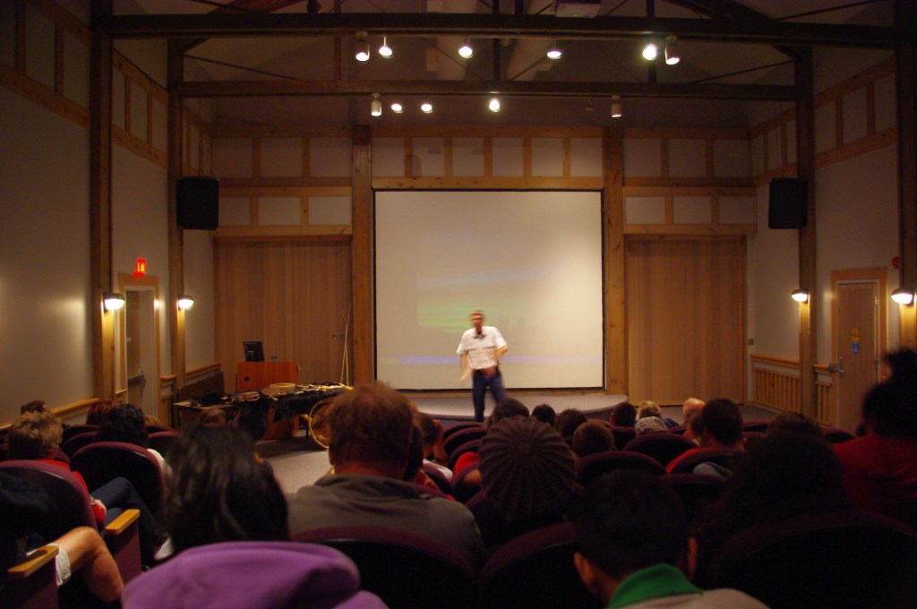 We found the Algonquin Park Visitor Centre to have classy exhibits on the Park’s natural and human history, a relaxing restaurant and an excellent bookstore. There was a spirited and a sprightly theatre presentation going on that summed up the Park story, followed by question and answer session.