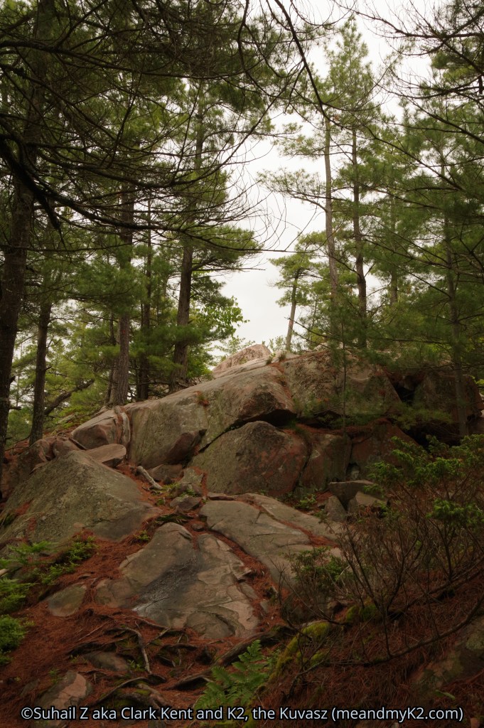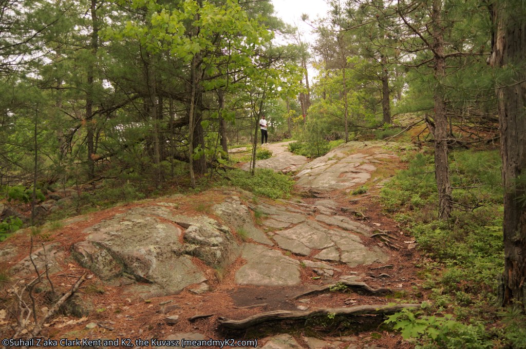 My son and I hiked on a moderately difficult 2 km long Granite Ridge Trail that required hiking carefully on granite rock outcrops.