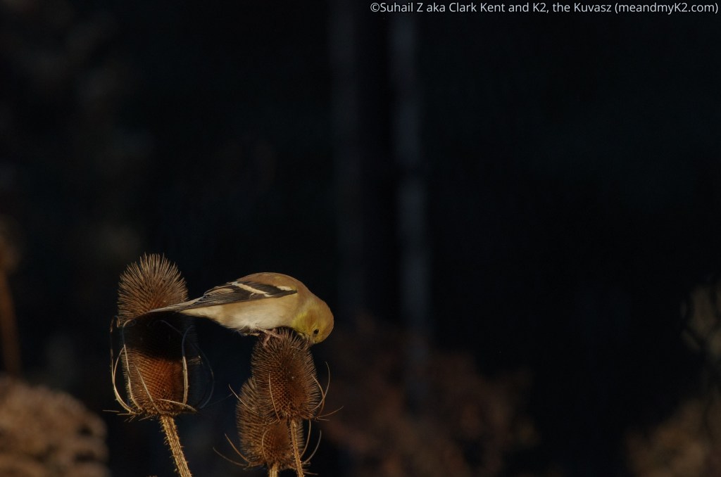 The colours of male goldfinch change from gold to dull and they are constantly feeding on last bits of seeds before migrating south. The birds like northern cardinals and American Robins become more wary of humans and start lurking in the bush rather than the open grounds.