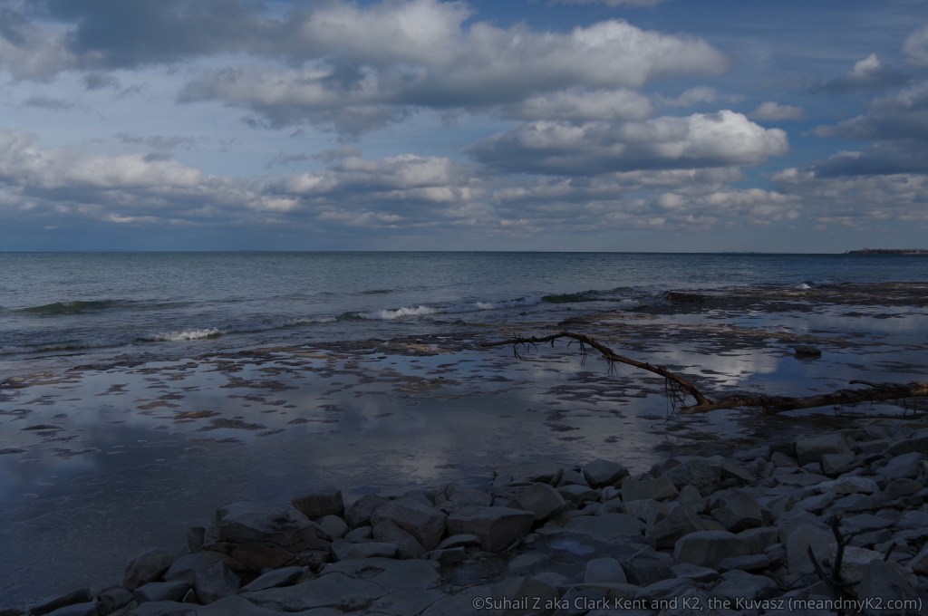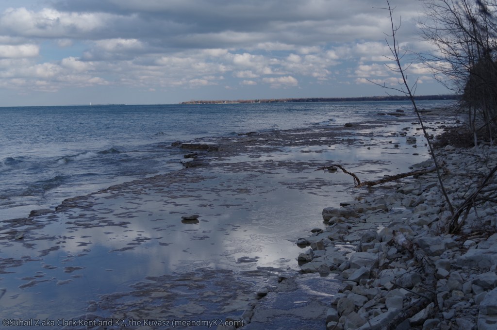 Since I was not allowed to camp out in the open due to the storm, I stayed with my family at a hotel in Wasaga Beach Area and reached the park next morning where I was able to hike. Enjoy two shots of park’s rocky beach below.
