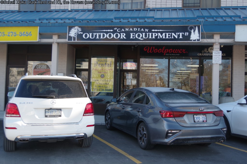 - Buying my outdoor gear from a small store in Mississauga (second shot);