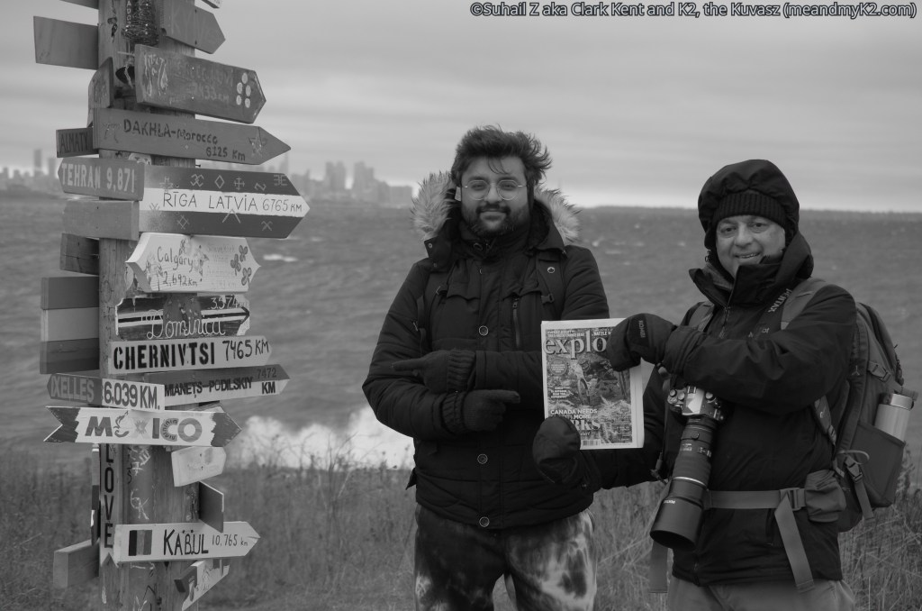 My son took these shots at Col Samuel Smith Park on December 10, 2022 as I held Explore magazine in my hands in an extreme windy and chilly conditions. We set the camera to monochrome as we wanted to reflect the late 19th and early part of the 20th century when the foundation for national parks movement was laid by the USA, followed soon by Canada, and then the rest of the world. The pole on our side has mileage signs for almost all major cities of the world.