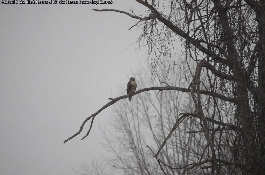 A red-tailed hawk was patiently waiting it out.
