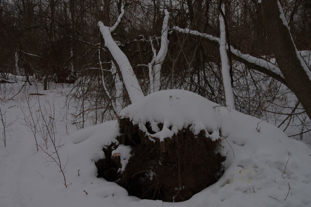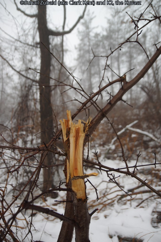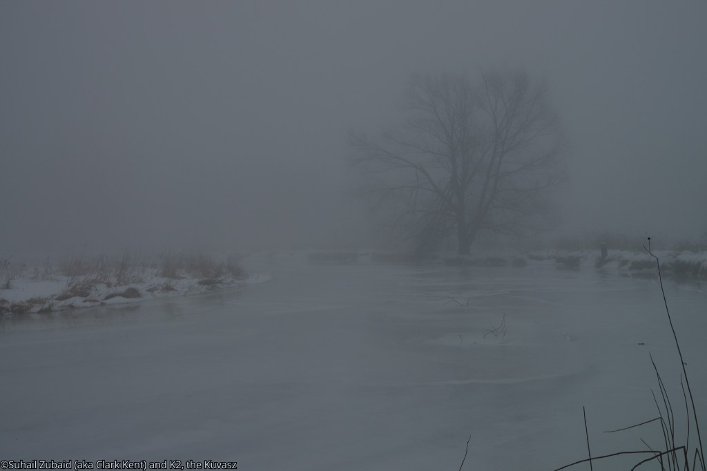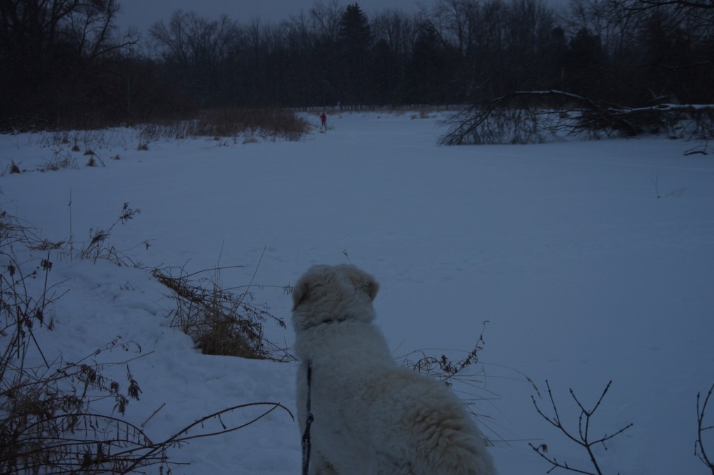 I snowshoed with Mount Godwin Austen “K2”, our Great White Hungarian Kuvasz. It was through the Meadowvale Conservation Area and adjacent trail system under heavy snow and fog after the polar vortex.