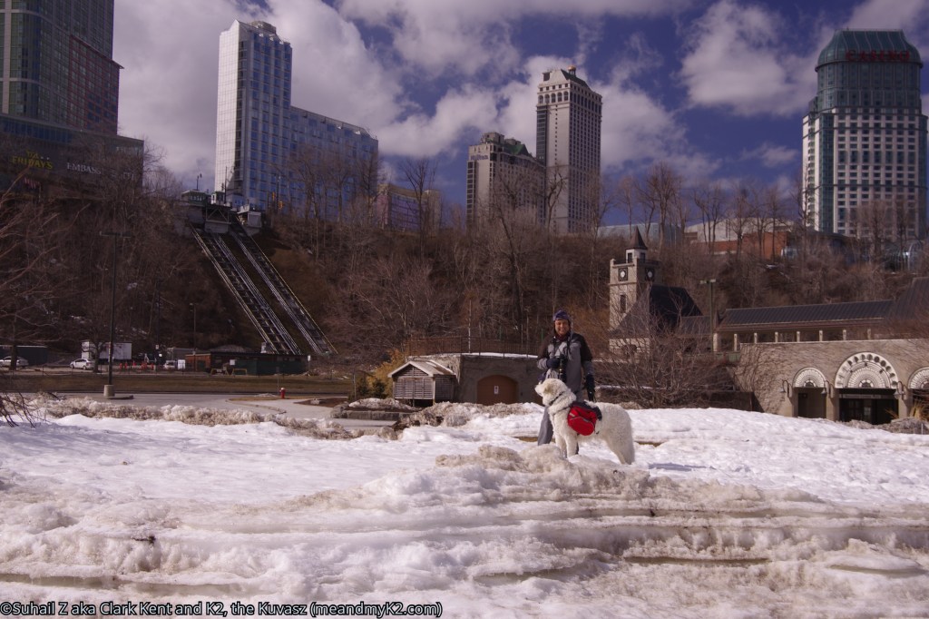 K2, our Hungarian Kuvasz, visited Niagara Falls with us many times, at least once in each season – winter, spring, summer, and fall. However, this photo essay is about his first visit.