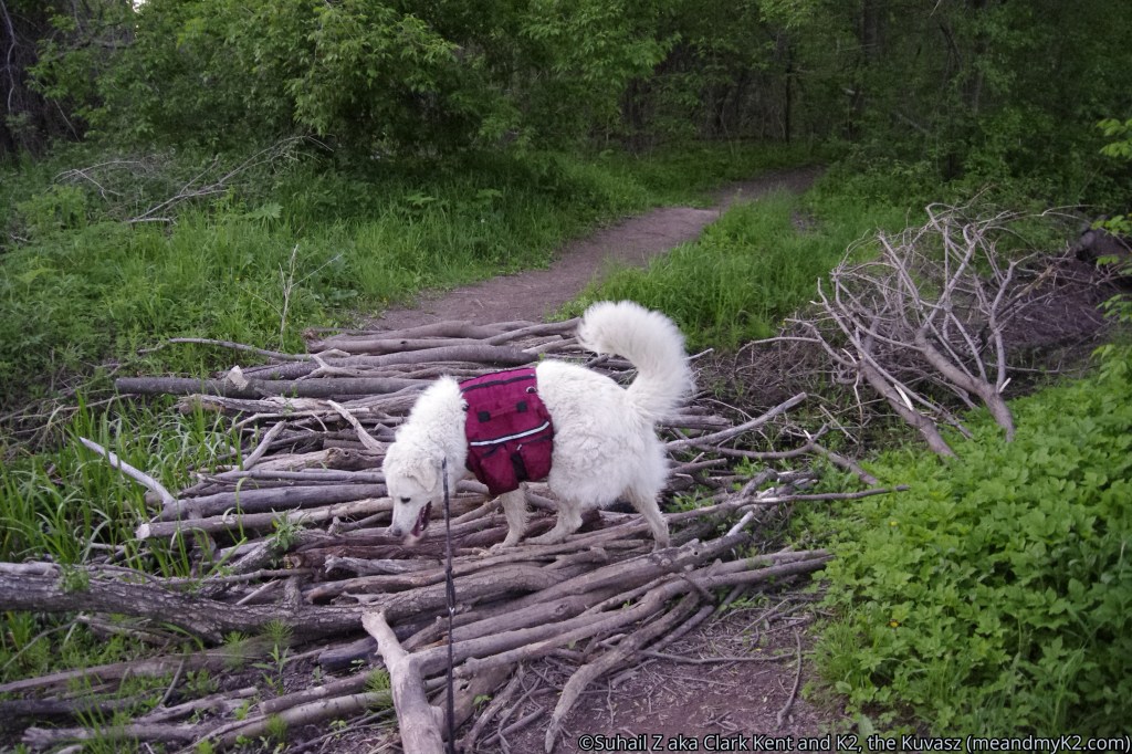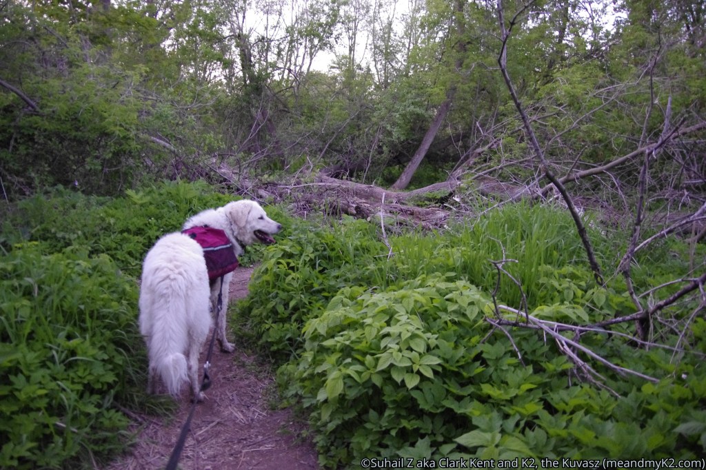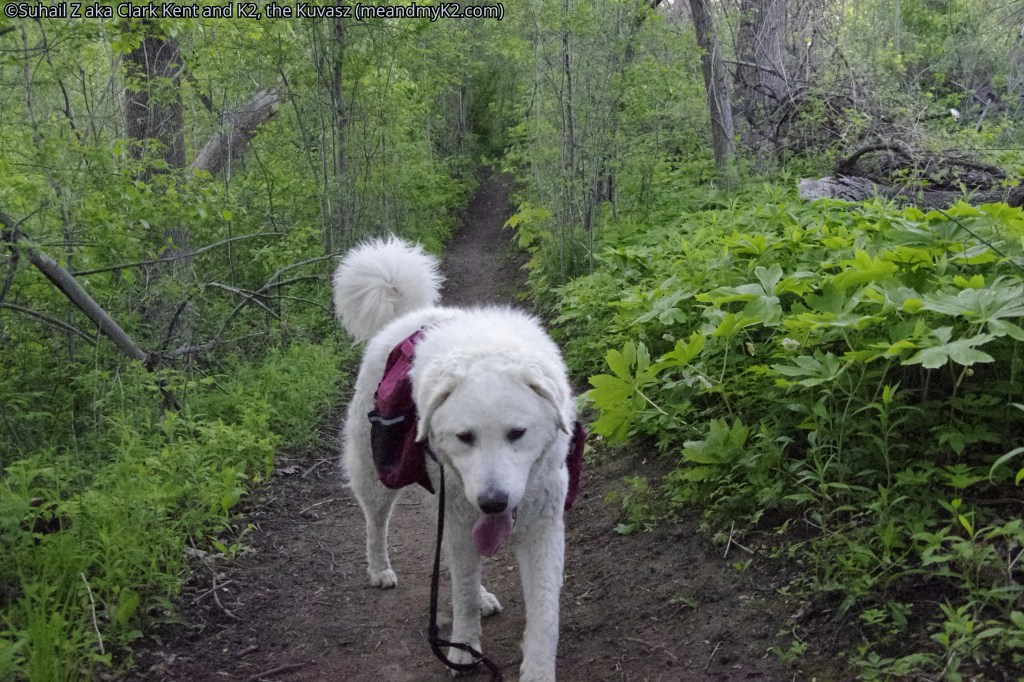 The trail became narrower as it passed through the forest. K2 seemed to be enjoying the scenery, but the humidity inside the forest made him pant a bit. Whereas I was taking in the idyllic scenery all around me, for K2 is was the smells all around that were enthralling.