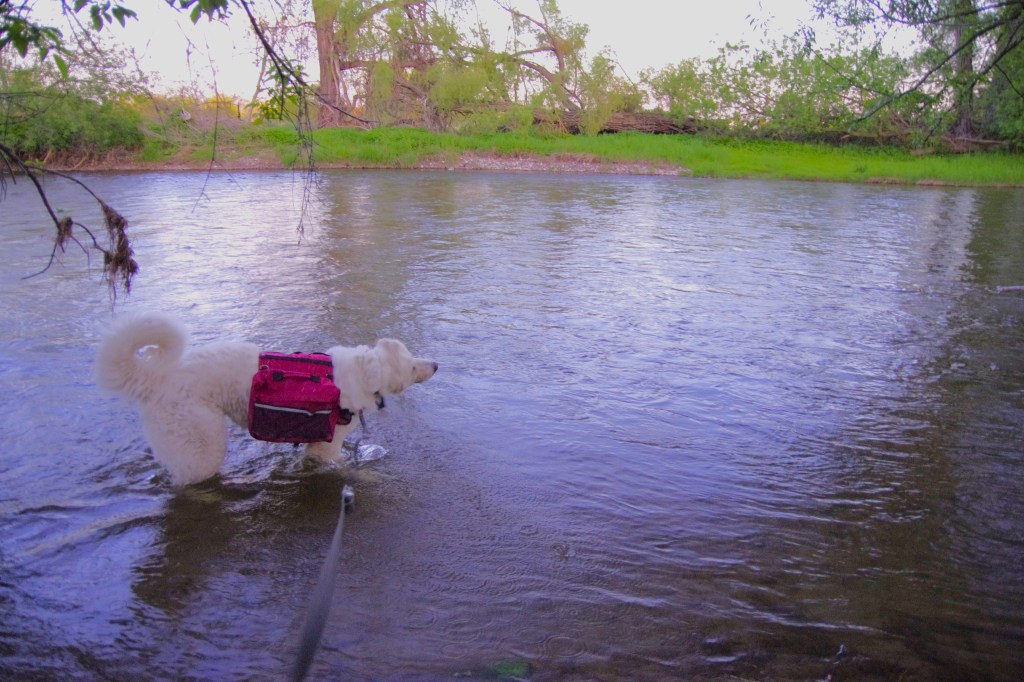 There was a local resident with his two furry friends on the other side of the river. K2 wanted to approach them, but there was no way we could have crossed the river from there. So K2 was content playing in the water on our side.