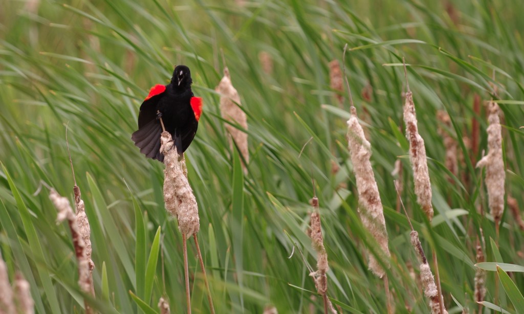 The initial section of the trail called Davidson trail offered lots of wild birds viewing. The photos below show a silhouette of a turkey vulture, a male American goldfinch in breeding plumage, a male grey catbird singing his heart out, a mourning dove foraging on the ground, a cedar waxwing, a male red-winged blackbird ‘conk-la-reeing’ his heart out, and a camouflaged spotted sandpiper. The sandpiper was perhaps picking the insects out of the wet mud.