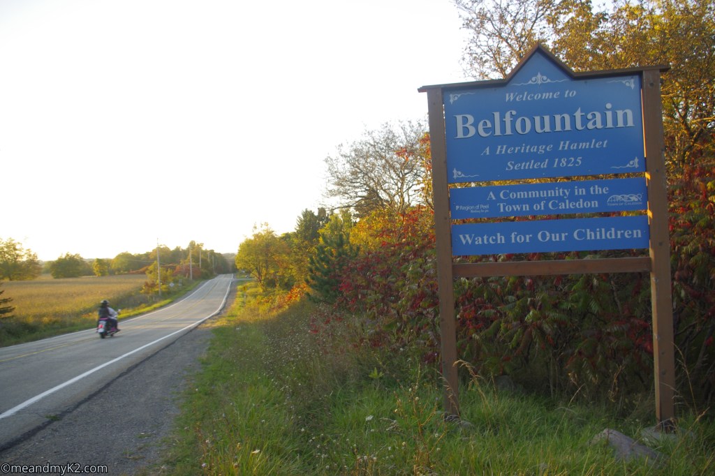 At the hamlet of Belfountain, K2 and I looked at the road that would take us to our destination southwards to Brampton) After hiking on the Road, where car drivers and motorcyclists kept waving at us, even offering snacks and water, we glanced back from where we had come.