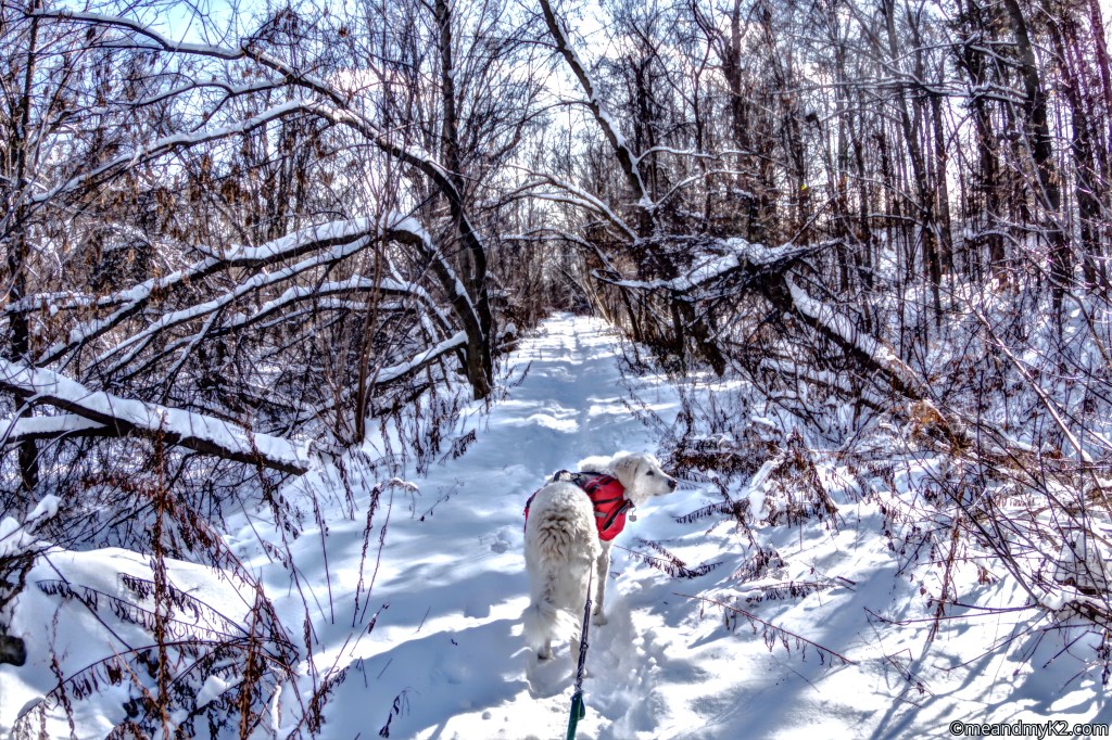 It was a moderately difficult hike due to extremely harsh weather conditions of the polar vortex, but the stress level was also moderate as I was in the company of my furry friend K2 and the farthest point of the trail was about 7 km away from my home.