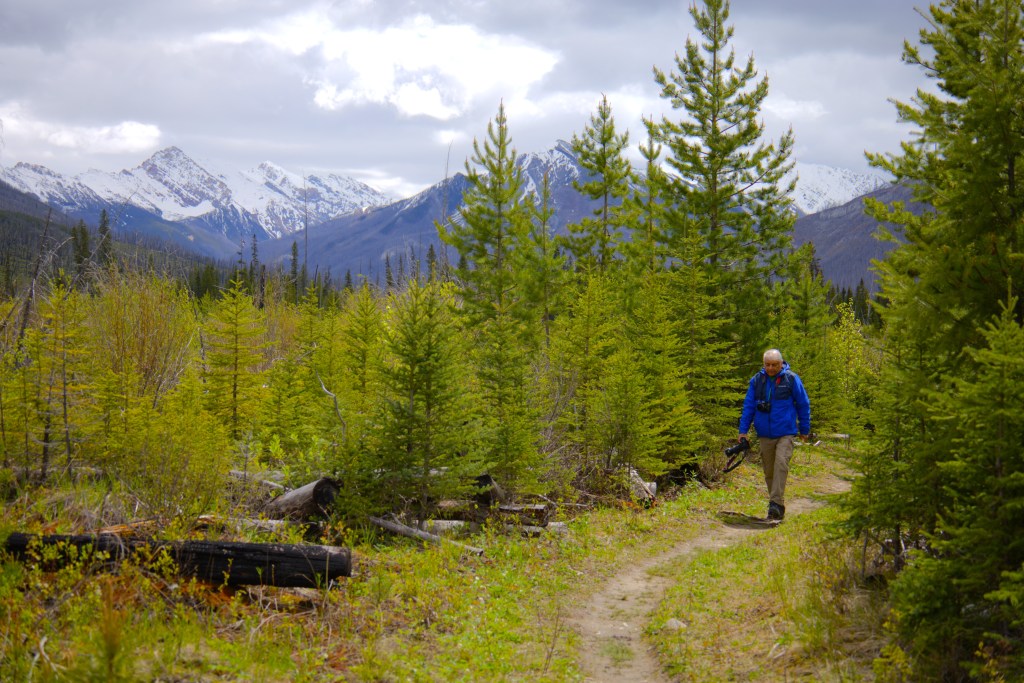 We were hiking on the Simpson River Trail in Kootenay National Park in the first week of June. The Park was living up to its reputation of the land of ice, at least it had snow covered mountaintops and surely several glaciers up there, and of fire.