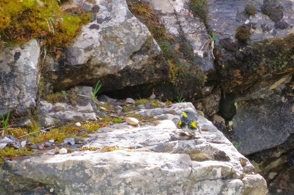 We saw this well camouflaged yellow-rumped warbler flying from rock to rock and perhaps catching insects during the flight.