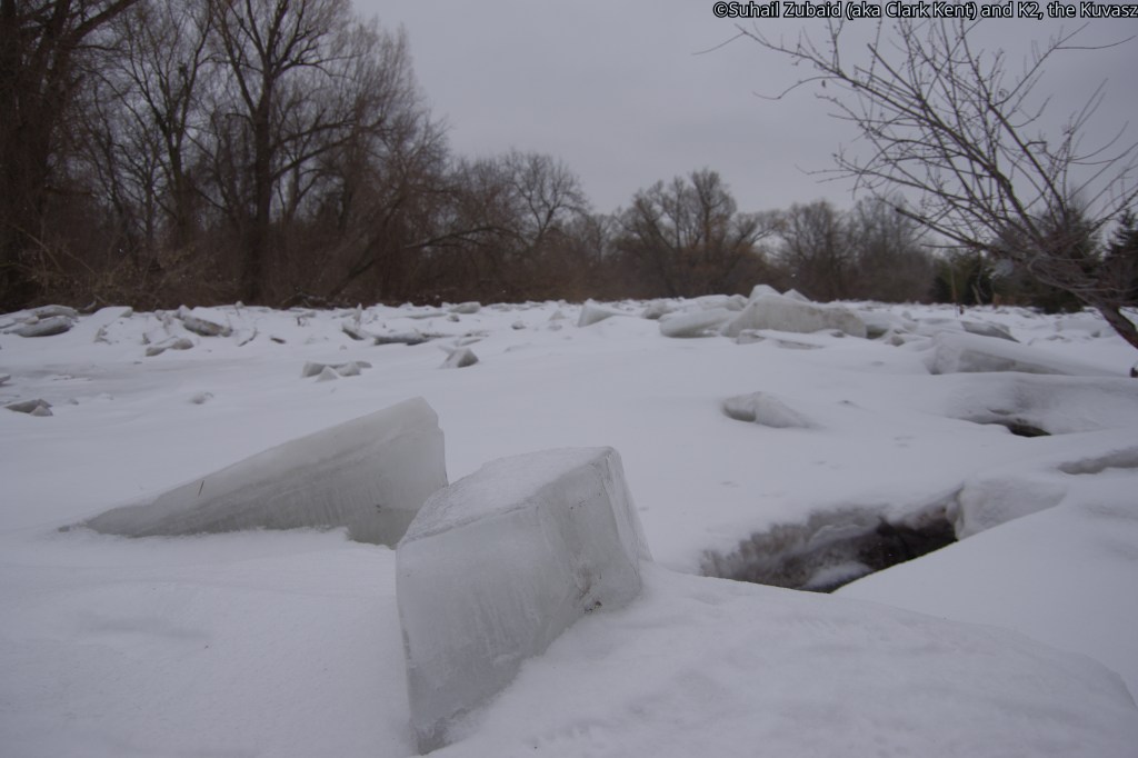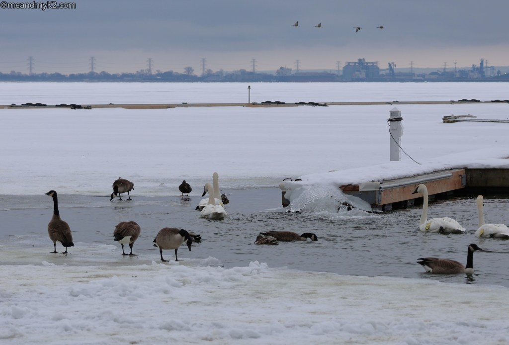 But, first thing first. Let me introduce you to the environment I walk pass through to do winter photography – frozen lake Ontario and frozen rivers and creeks with waterfowl on it under mostly cloudy days but sometimes in sunny conditions also (below).