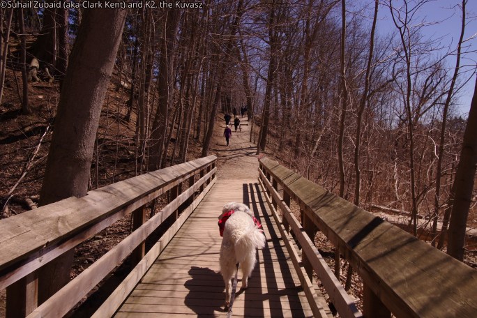 I am 100% positive that I am the only person who has hiked through various trails, parks after parks, roads, and sidewalks between Steels Avenue and Dundas Street along the Credit River. K2, our Hungarian Kuvasz, was with me.